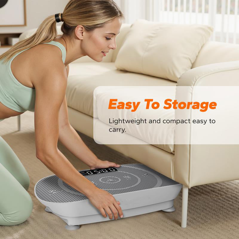 This lightweight vibration plate features a slim, space-saving design that stores easily under furniture for convenient home workouts.
